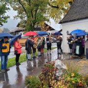 Musikalisch umrahmt durch die Riedener Blasmusik kamen im Verlauf der Feier der Dank von Bürgermeister Christian Wilhelm an alle, die zur Gestaltung des Platzes ebenso wie die Segensworte von Pfarrer Josef Kühn zum Ausdruck.