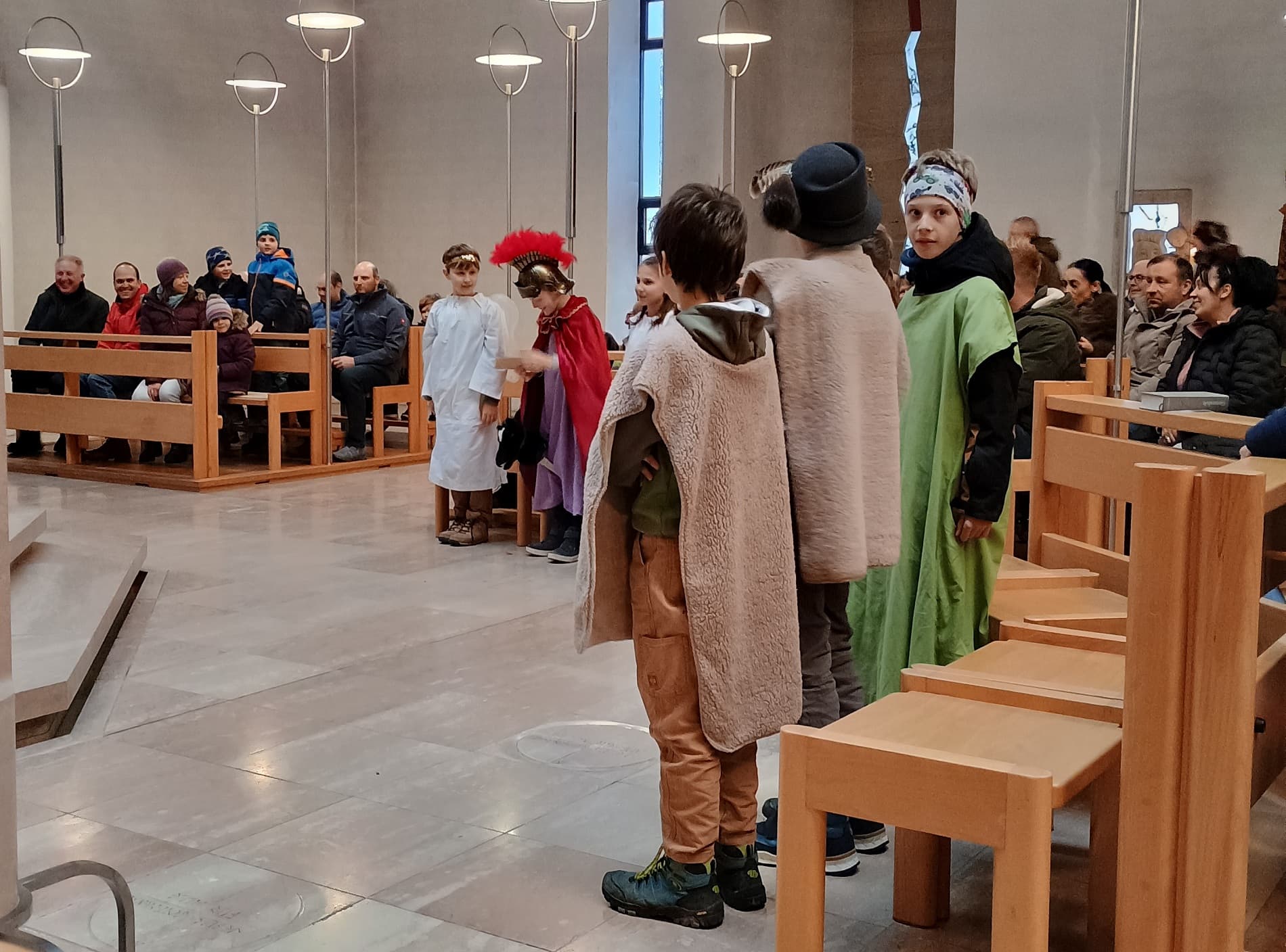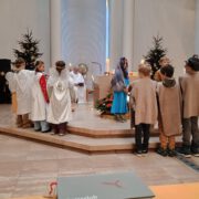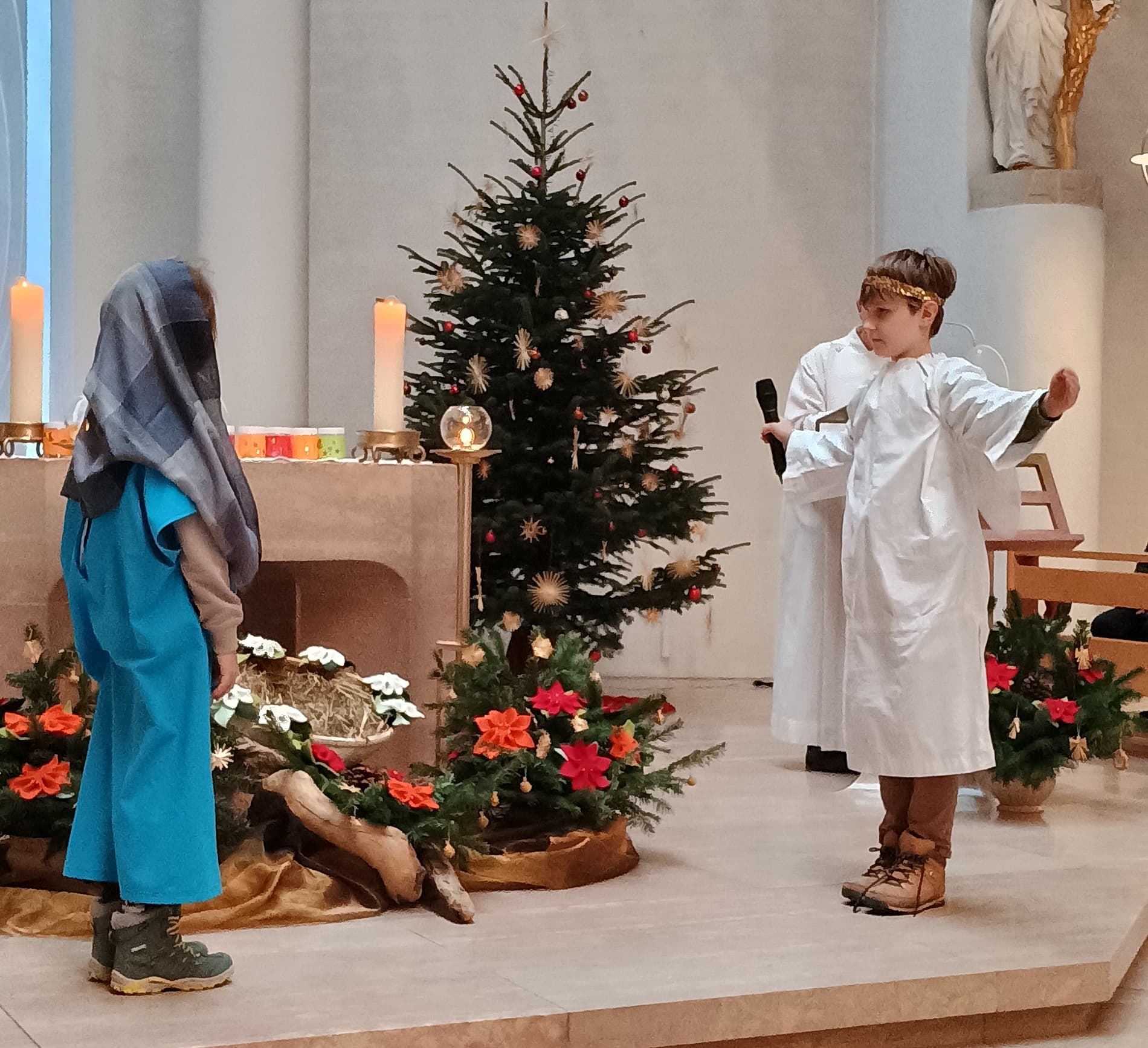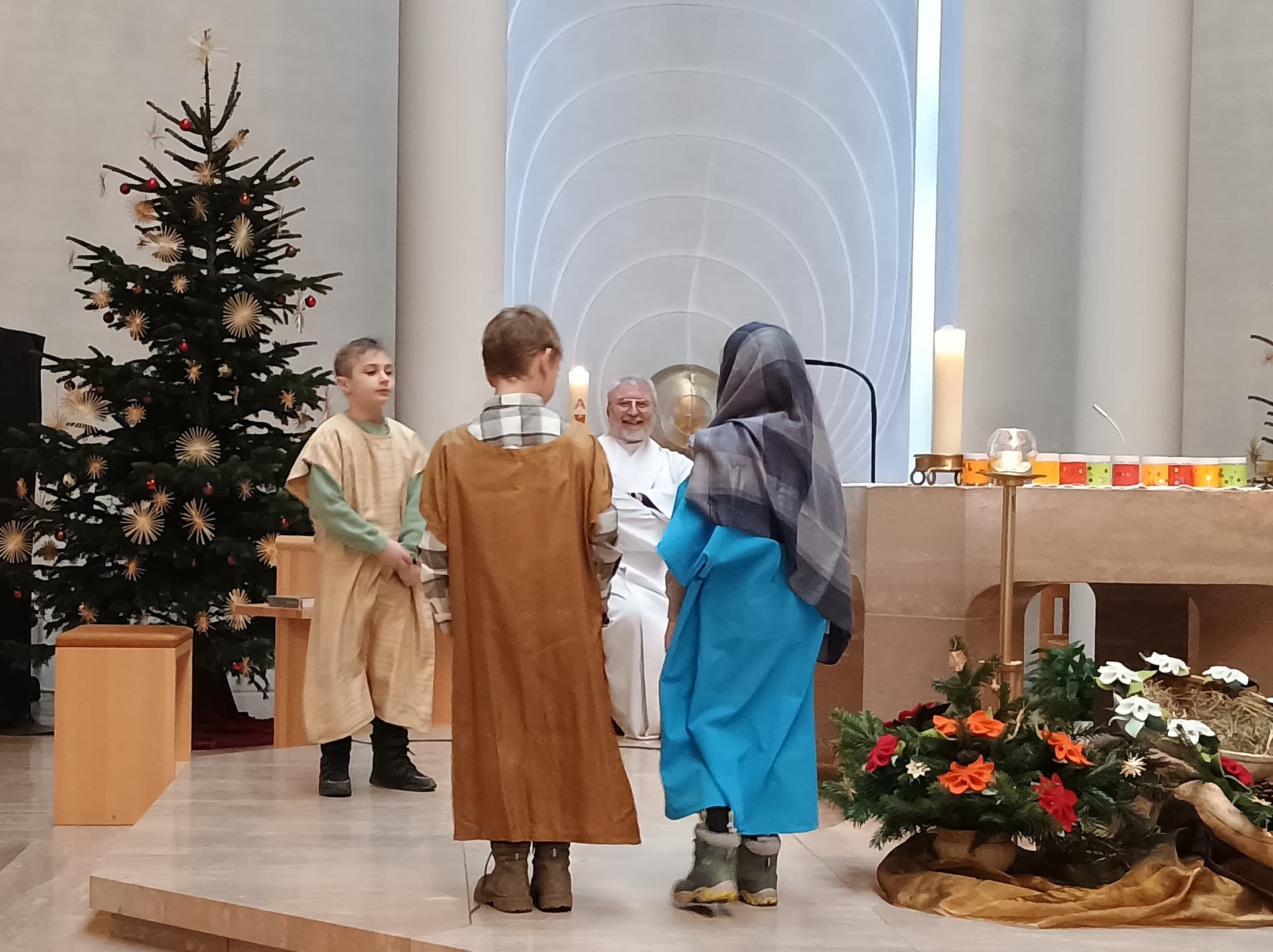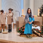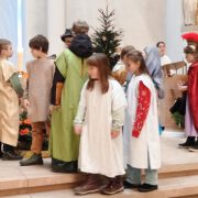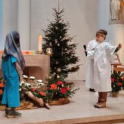 Engagierte Kinder spielten bei der Kinderkrippenfeier am Heiligen Abend in Maria Heimsuchung die Geschenisse um die Geburt Jesu.Auch dank des musikalischen Einsatzes der Familie Maurer wurde es ein kindgerechter Gottesdienst zum Weihnachtsfest.